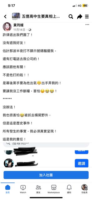 連負責的律師離開社團了,他都說是因為對面勢力太大。