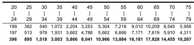 隨著年齡越高人數越多