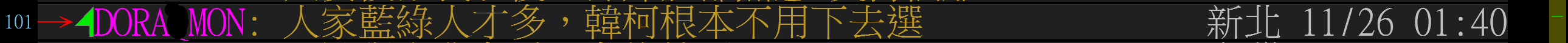 → DORAQMON: 人家藍綠人才多,韓柯根本不用下去選 1.200.77.65 11/26 01:40