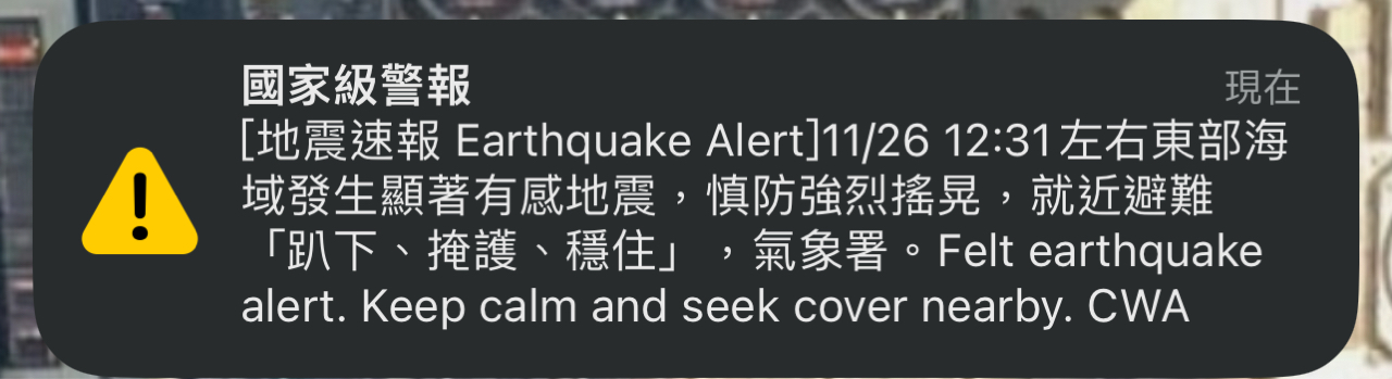 推 z45678915: 這地震有感 39.14.40.79 11/26 12:32