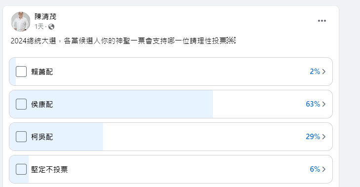 → IBIZA: 陳清茂昨天辦了投票 侯趙63% 111.240.204.83 11/26 14:25