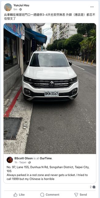 噓 leo125160909: 違停超過3分鐘且明確阻擋交通才能檢 111.82.9.37 11/29 13:56