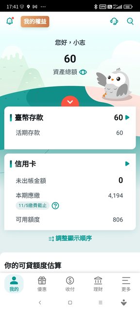 → austen911: 信用卡額度只有五千塊? 111.71.43.53 11/29 18:54