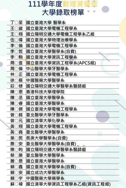 : 看來是醫學系跟牙醫系沒考上