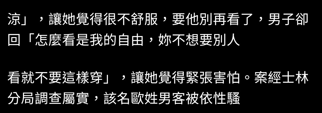推 newwer: 視線罪 用看的都犯法 101.10.1.91 11/30 14:44