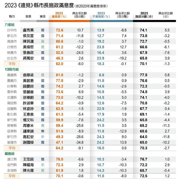 根據遠見雜誌5/30公布的這份施政滿意度