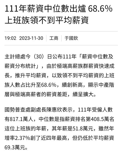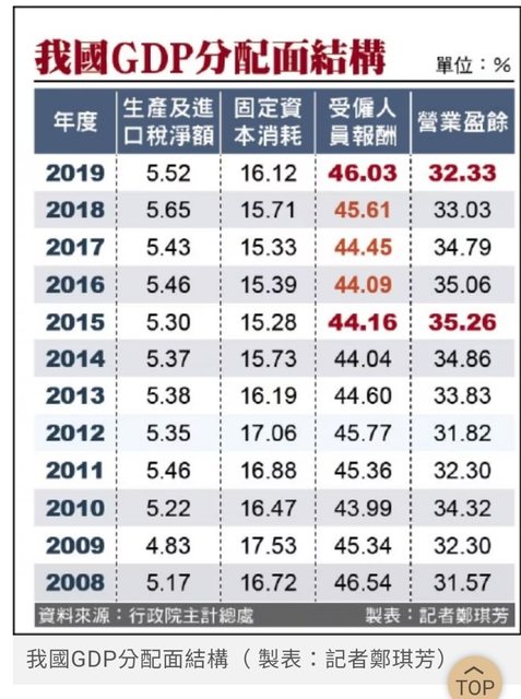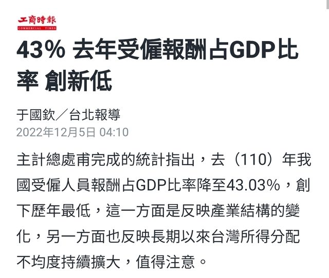 就連總體受雇薪資也不過佔比4X%