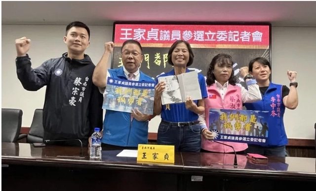 ,王家貞在多位國民黨議員的陪同下,在南市議會召開參選記者會,強調勇敢接受挑戰,