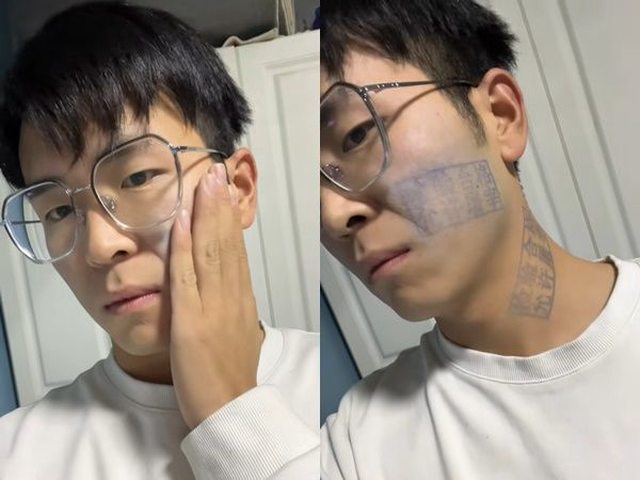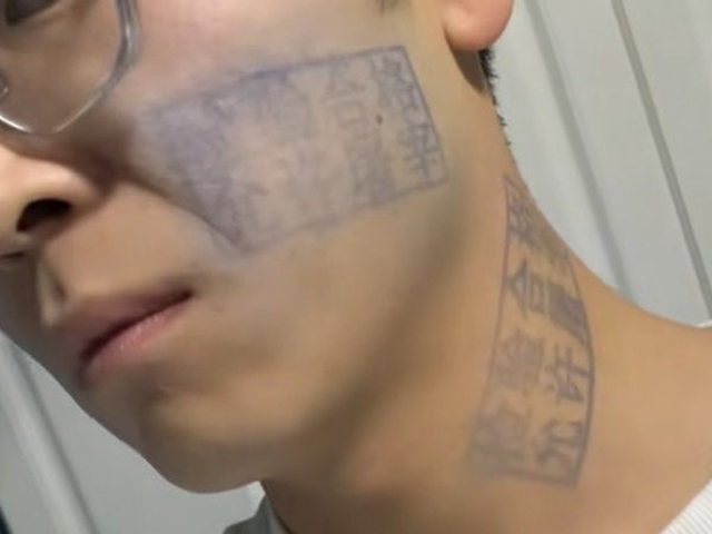男子本以為印章可以用水清洗掉,沒想到兩天後仍非常清楚,害他出門時只能穿高領毛衣