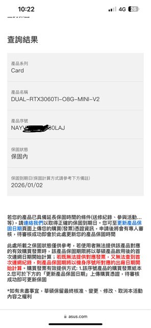 保固至2026/01/02(附上查詢內容)