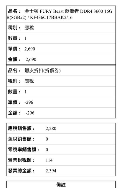 硬體型號:金士頓fury beast rgb 8gb 3600 ddr4 *4