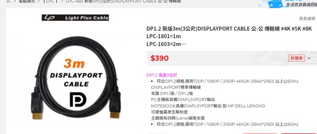 DP1.2 新版3m(3公尺)DISPLAYPORT CABLE 公-公 傳輸線