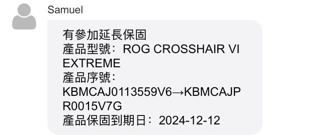 2. 2019/12購入,保固到2024/12,去年故障送過皇家,換了一張給我正常使用到現在,