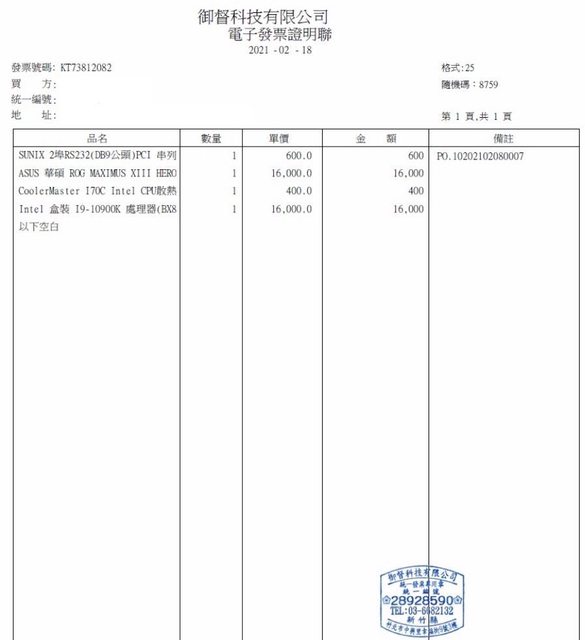 CPU MB購買證明