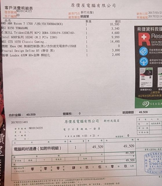 1.購買日期 前三項的購買日起為2017/03/21,後兩項不可考