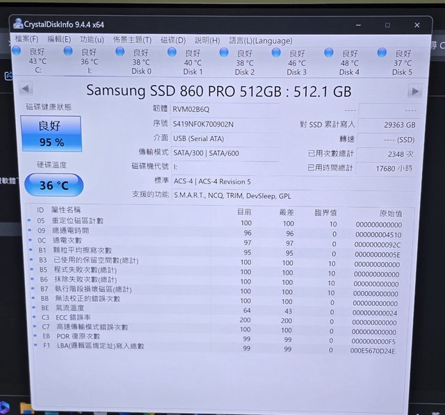 2.Samsung 三星860 PRO 512G SATA SSD MLC顆粒