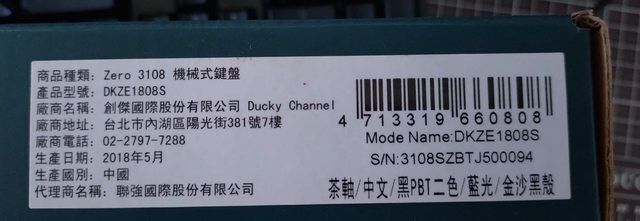 ◎硬體型號: Ducky Z3108 茶軸