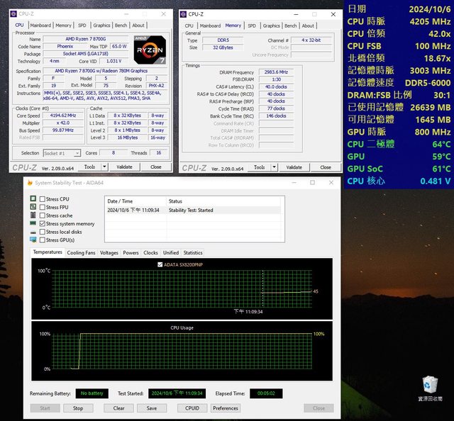 台上可上DDR5-6000 CL40不變,預設1.1V不加壓.購買者有興趣可自行摸索.