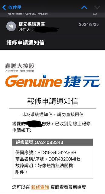 2.原購買日期2019/03,8/25送修後RMA領回全新未拆封,終身保固