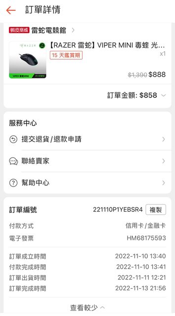 1.購買日期: 2022.11.10 蝦皮商城購入