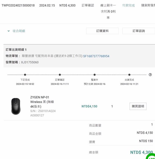 1.購買日期: 2024.5.30 FB社團二手購入(原始購買日期2024.2.15)