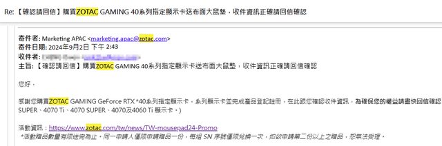 2024 - 9月2號購買 40 顯卡回函贈品