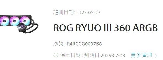 ◎硬體型號:ROG RYOU龍王 III 360 水冷