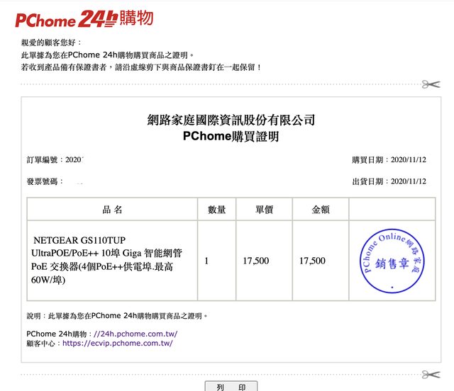 ◎硬體型號: NETGEAR GS110TUP PoE++ 供電