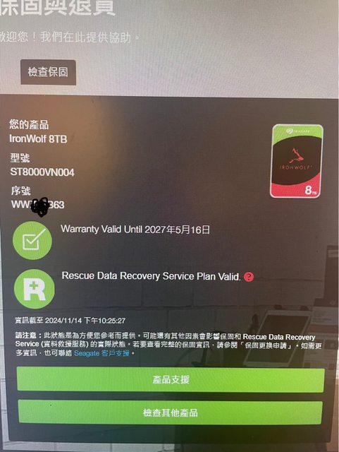 今天七月中旬購買,Seagate 原廠保固中(2027/5/16),正常使用,有盒裝。