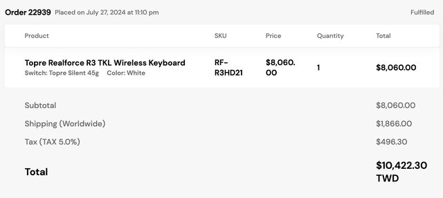◎品樣狀況: 9成9新,用不到 10 次,約 2024/7/27 購於 mechanicalkeyboards.com