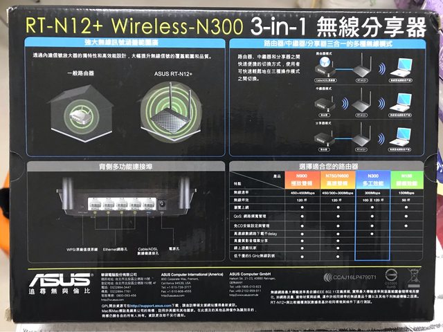 ◎硬體型號: ASUS RT-N12+ N300無線路由器