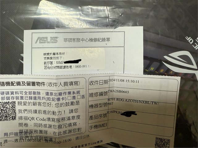 標題[賣//] Asus ROG AZOTH NX青 RMA新品未拆