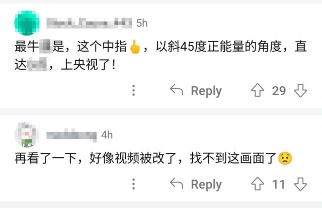 不過,還是有多個地方黨媒尚未來得及做出更改,仍然保留著比中指的視頻。