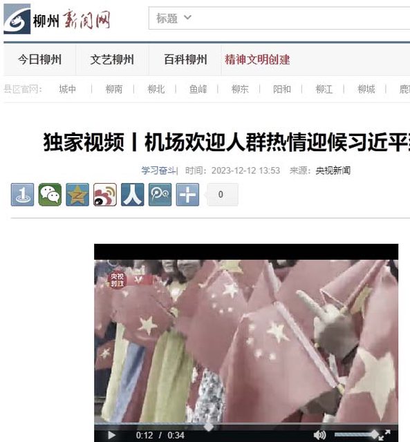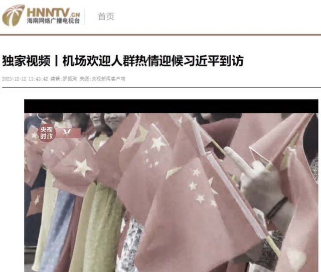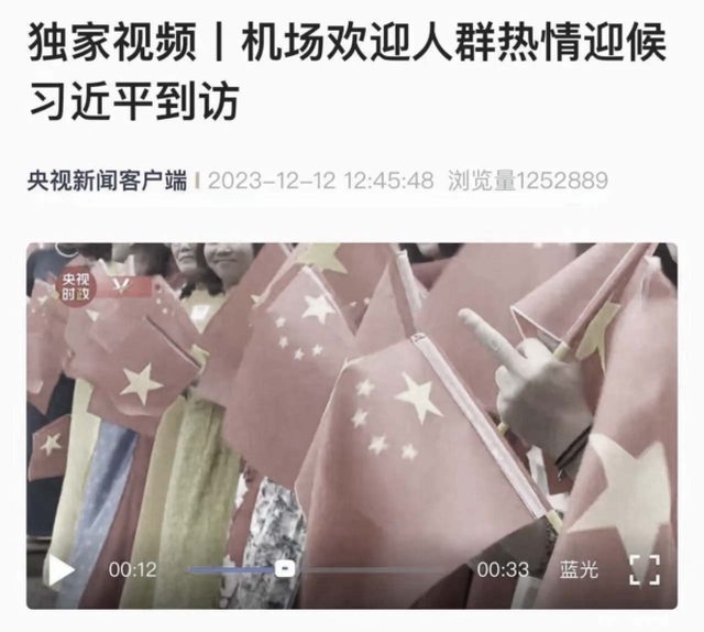 北京時間12月12日,習近平出訪越南,抵達河內的機場。央視新聞客戶端即時播放了一段