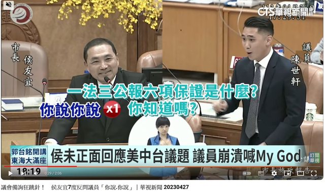 也沒見侯友宜回答、就之前侯友宜在議會被民眾黨陳世軒問 一法三公報六項保證