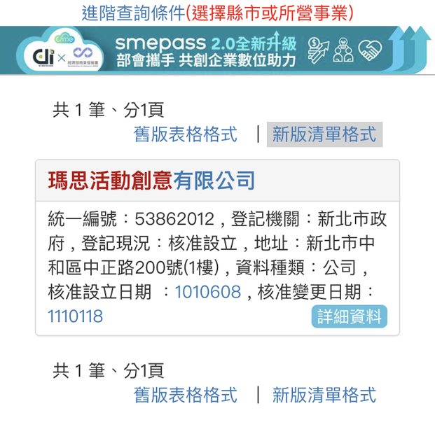 另外在經濟部網站查詢