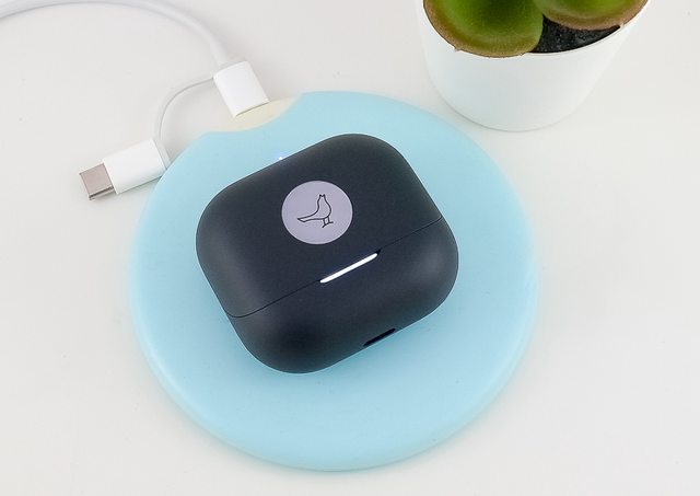 背面則設置了一個按鈕,用於重置、配對和切換裝置,另外充電盒有支援 qi 無線充電。