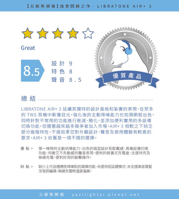 看完了以上的外觀介紹,相信大家都對 LIBRATONE AIR+ 3 有了一定程度的了解,這邊本