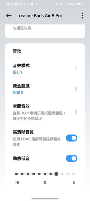 這次的realme buds air 5 pro,多了ldac還有360度效果感覺聲音變得開闊並且飽滿,現在
