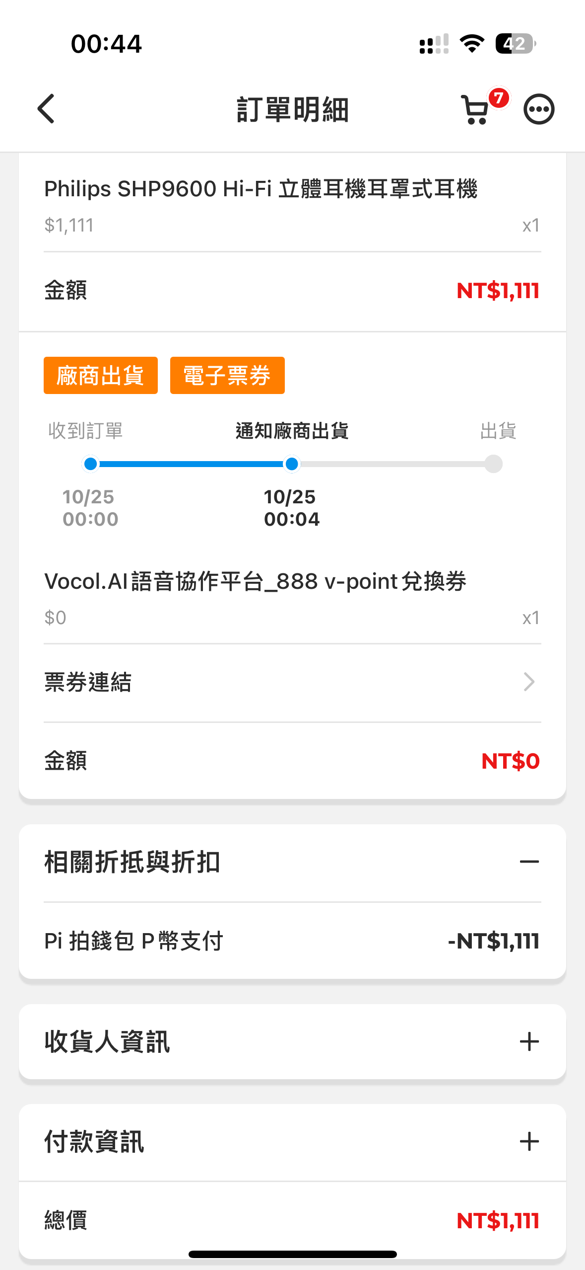 推 yshin823: 我全額用pi錢包的p幣付款 10/25 00:46