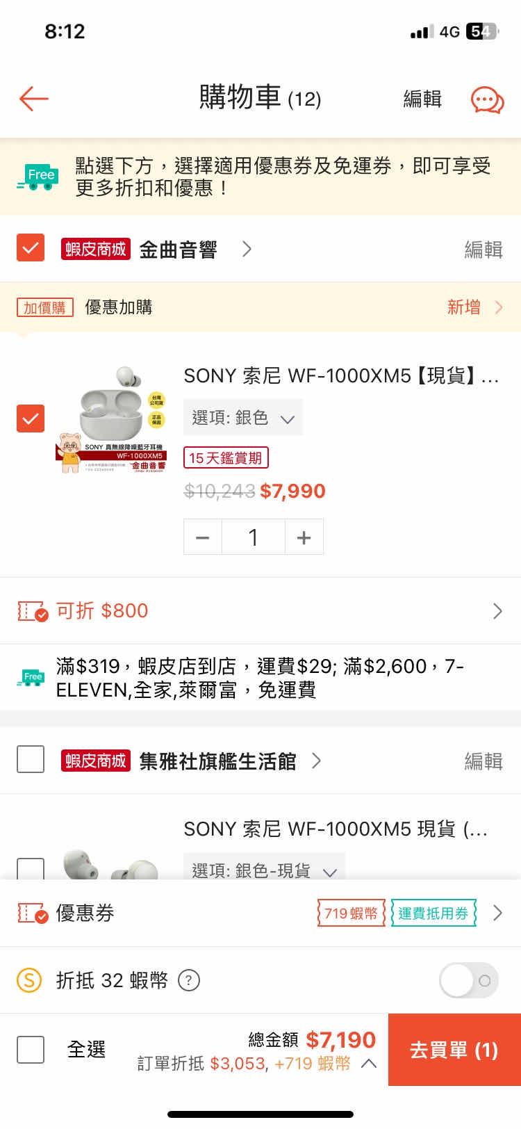 → chun0629: 除了拿蝦皮優惠券外 大家最殺就是到7990應該是sony答應 11/01 08:05