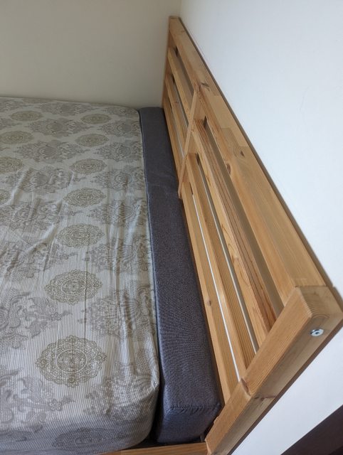 當初買床時不知道原來ikea的床架與台規不一致,所以後來另外訂製了床縫條,不介意的