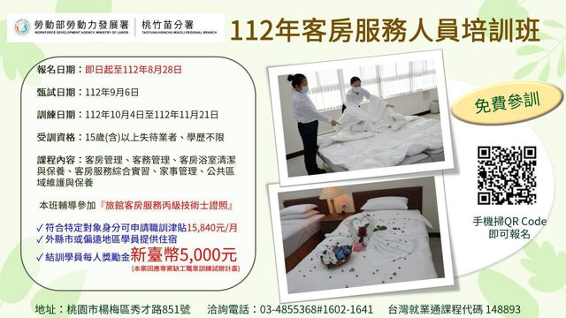 標題[情報] 【客房服務人員培訓班】免費參訓