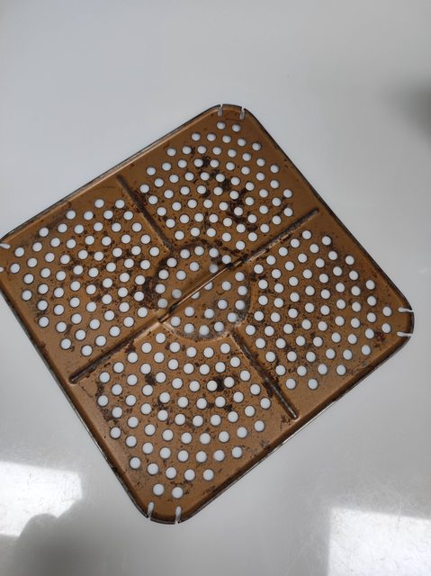 烤網塗層有部分剝落(我平常使用時會在上面墊烘培紙),也可上網購買新的烤網取代。
