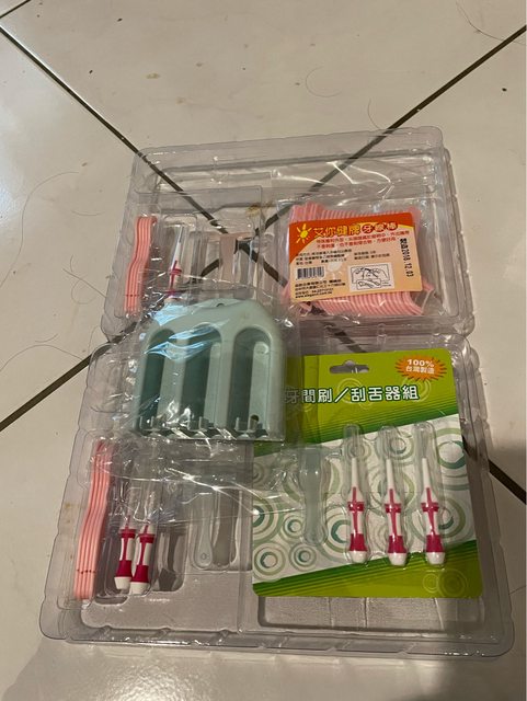 全新牙線、牙間刷、刮舌器、牙刷架,如圖 限全取