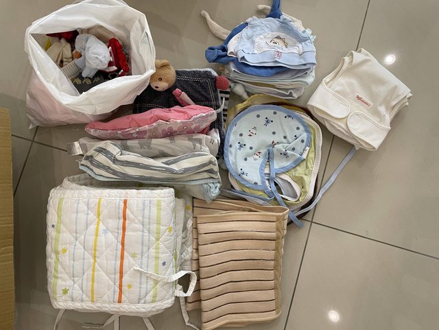 床圍、束腹帶、吃飯防水圍兜、布圍兜、嬰兒襪子手套、帽子、0m布尿布