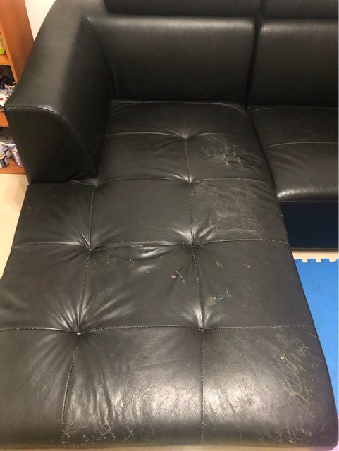 7.L型沙發(L區皮面磨損,底部被小孩跳壞)(恰中)
