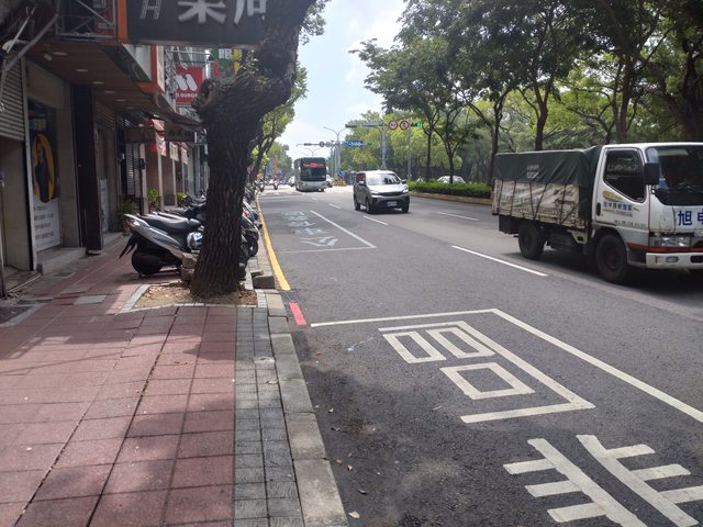 其實我覺得這裡搭公車不太友善 這裡卸貨貨車停更頻繁了 而且全部都畫機車停車格