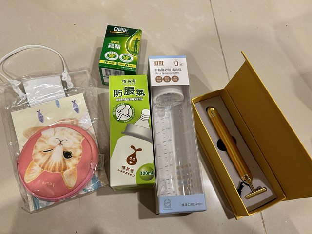 小零錢包、奶瓶(未使用過)、臉部導入按摩棒(朋友送未使用過)