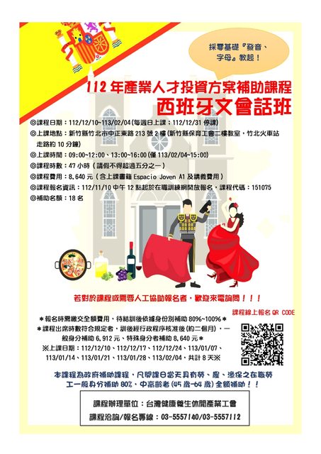 【112下在職補助課程分享~西班牙文會話班】11/10中午12點開放報名!